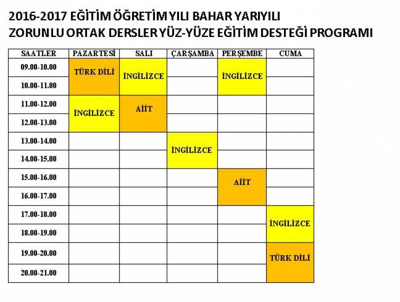 Öğrencilerimizin kendi programlarındaki boşlukları göz önünde bulundurarak verilen destekten faydalanmaları yararlarına olacaktır.